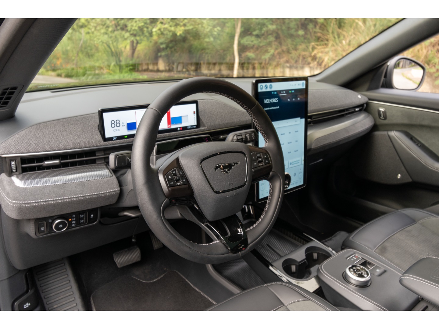 Essa unidade está na cor Preto Astúrias com o interior em Couro e Tecido Premium Preto. Seus principais opcionais são rodas 20", sensor de luz e chuva, alerta de colisão frontal, frenagem automática de emergência, alerta de tráfego cruzado traseiro, frenagem automática em manobras, alerta de ponto cego e mudança de faixa, assistente de permanência e centralização em faixa, indicador de fadiga, faróis e lanternas Full LED, assistente de farol alto, ar condicionado dual zone, piloto automático adaptativo, Park Assist, Keyless, abertura eletrônica das portas, bancos dianteiros elétricos com aquecimento, banco do motorista com memória, suspensão adaptativa MagneRide, freios Brembo, porta malas elétrico, teto panorâmico fixo, carregador de celular por indução, som Bang & Olufsen, sensor de estacionamento dianteiro e traseiro, câmera 360º, painel de instrumentos digital de 10,2", multimídia SYNC de 15,5" com Apple CarPlay e Android Auto, iluminação ambiente configurável, volante multifuncional em couro com aquecimento.