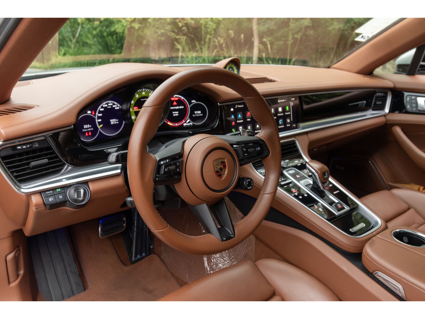 Full PPF! Essa unidade está na cor Giz com o interior em Couro Club Marrom Cohiba. Seus principais opcionais são rodas 21" Exclusive Design sport pintadas em preto jet, bancos esportivos adaptáveis na frente elétricos de 18 vias com memória, bancos dianteiros com aquecimento, pacote exterior em preto brilhante, designação do modelo pintada em preto alto brilho, sistema de escape esportivo incluindo ponteiras em preto, faróis em LED Matrix com PDLS Plus, lanternas exclusive, câmera Surround 360º, painel de instrumentos em verde lizard, cronômetro em verde lizard, logo Porsche gravado nos encostos de cabeça, assistente de mudança de faixa, volante Sport GT em couro com aquecimento, Head-Up Display, suspensão a ar adaptável com PASM, portas com fechamento suave, teto solar panorâmico, pacote interno de luzes, ar condicionado de 4 zonas, piloto automático adaptativo, Porsche Entry, som Bose, multimídia PCM de 12,3" com GPS, Apple CarPlay e Android Auto...